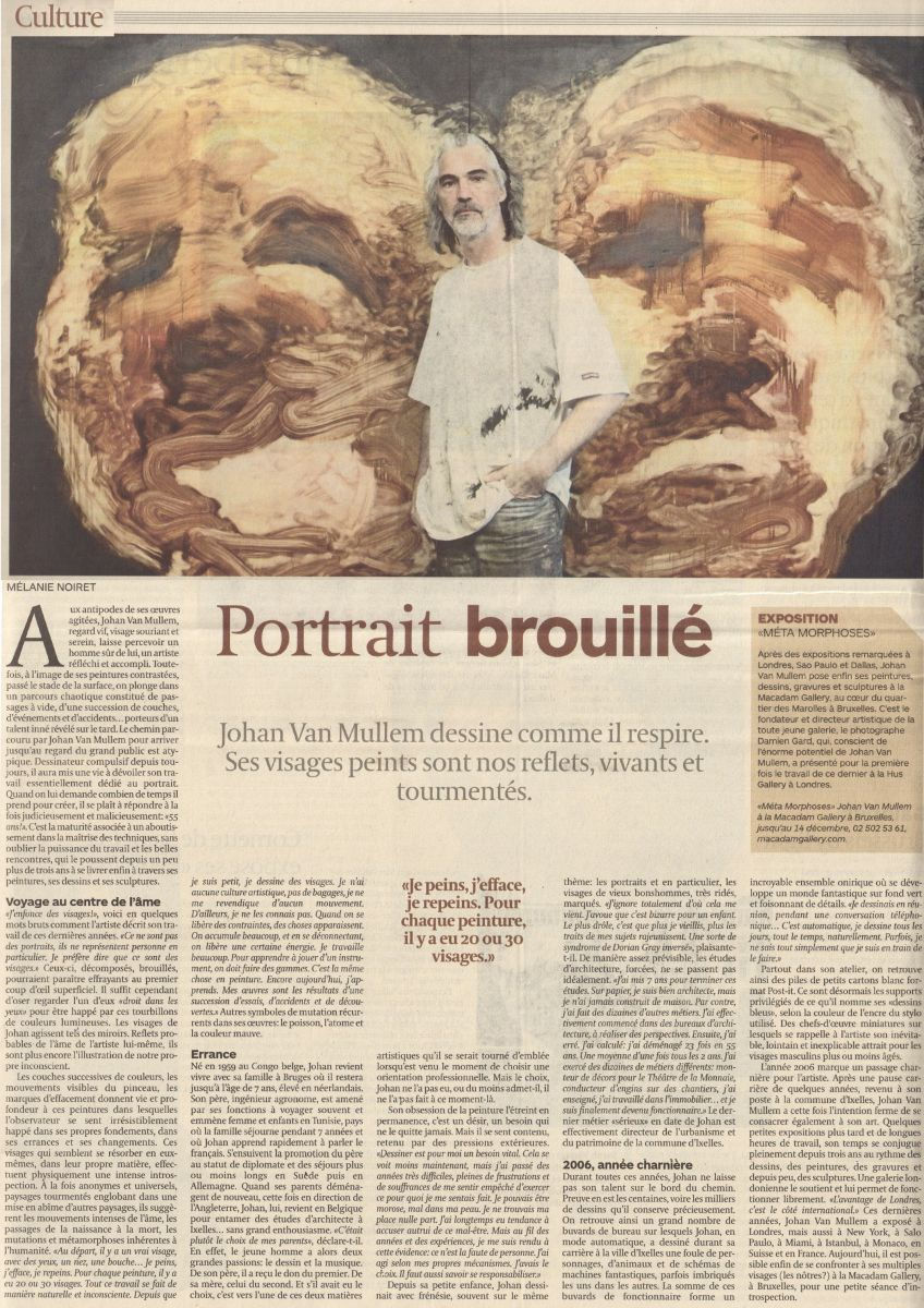 Qui sont ces personnages? Ne sont-ils pas finalement la représentation sismographique du reflet de l’artiste lui-même dans le miroir du quotidien? A travers lui nous retrouvons tous nos états d’âmes, réels ou fantasmés. Qu’ils nous effraient ou nous fascinent, ils déclenchent toujours quelque chose. Ils sont toujours incarnés. Et c’est ici que Johan Van Mullem touche à l’essence même de cet exercice difficile, presque surfait, du portrait en peinture. Il ne peint jamais la surface d’un visage, mais sa profondeur, son essence.